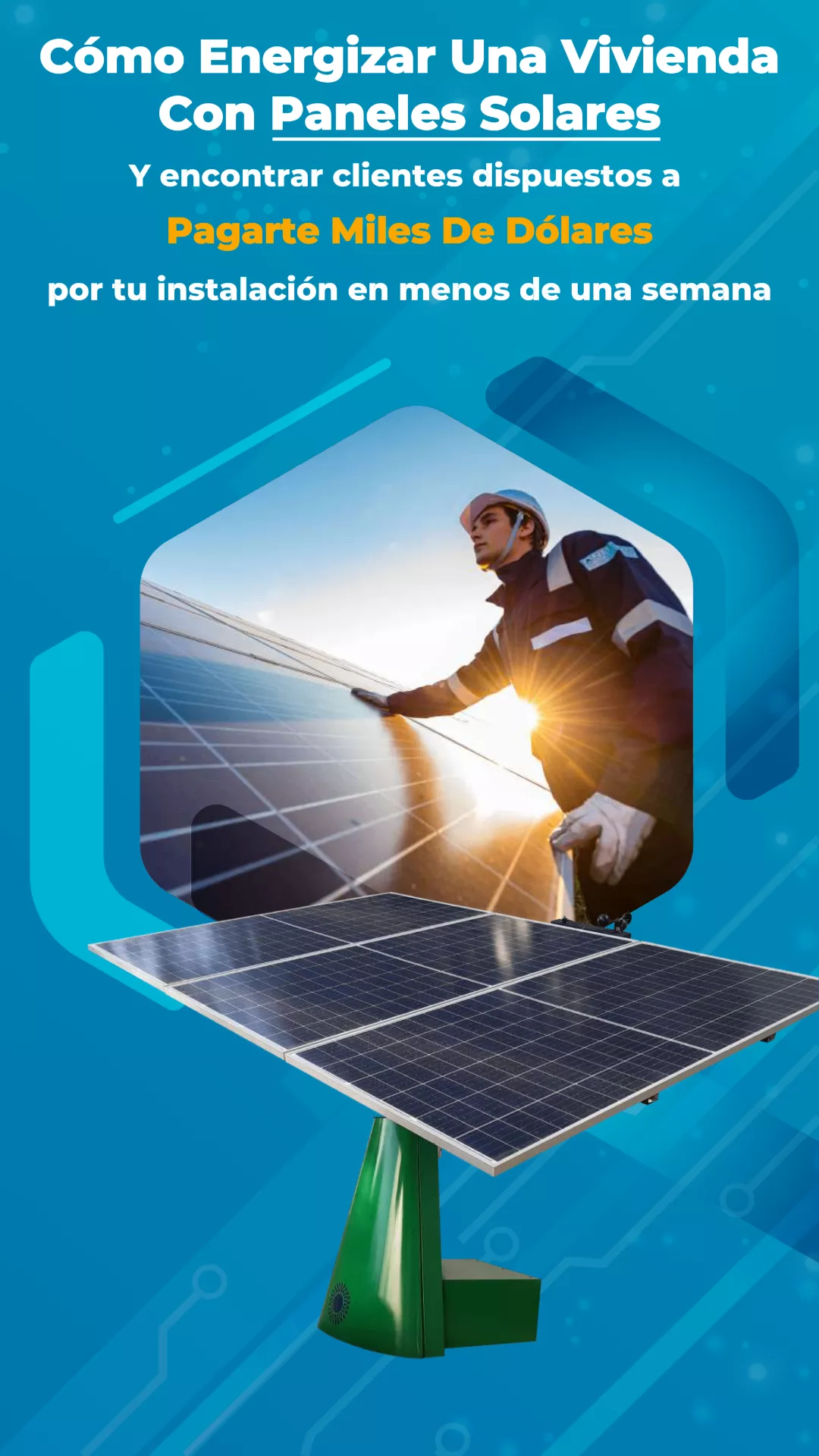 También, a los que se Inscriben hoy, les muestro como Uso La Inteligencia Artificial de Facebook para que Clientes Dispuestos a Pagarme Por mis Trabajos Se Contacten TODOS LOS DIAS para pedirme más Información y solicitar cotizaciones para Sistemas de Energía Solar. Esto te Ayudará A Acelerar El Cierre de tu Primer Proyecto Solar.
